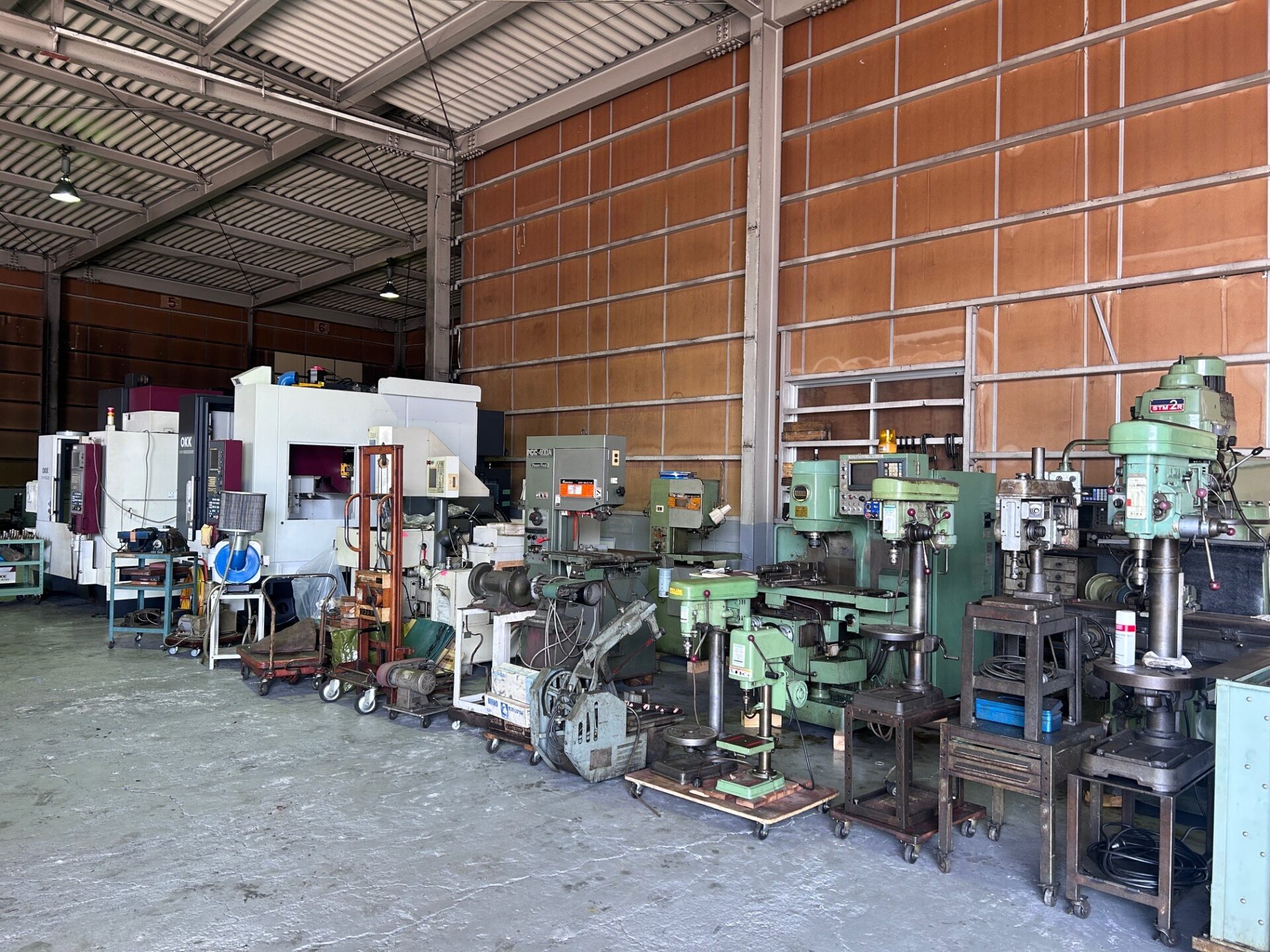 羽曳野市の自社倉庫に、汎用機からNC機まで多数の在庫を常設。実機を直接見て触れて確認いただける体制を整えており、迅速かつ柔軟な対応が可能です。